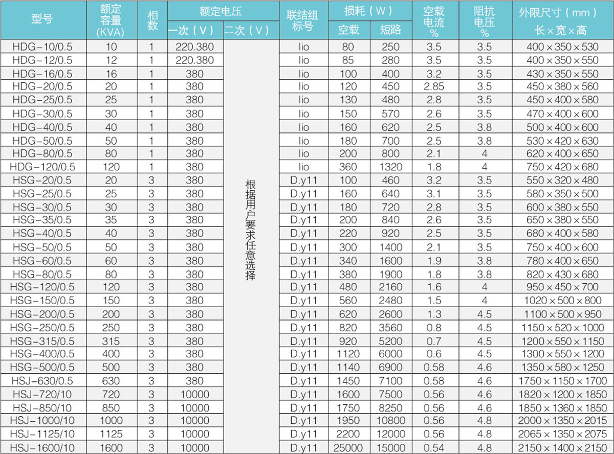 1、產品型號 2、額定容量 3、相數 4、聯接組別 5、調壓方式 6、高、低壓電壓 7、特殊要求
